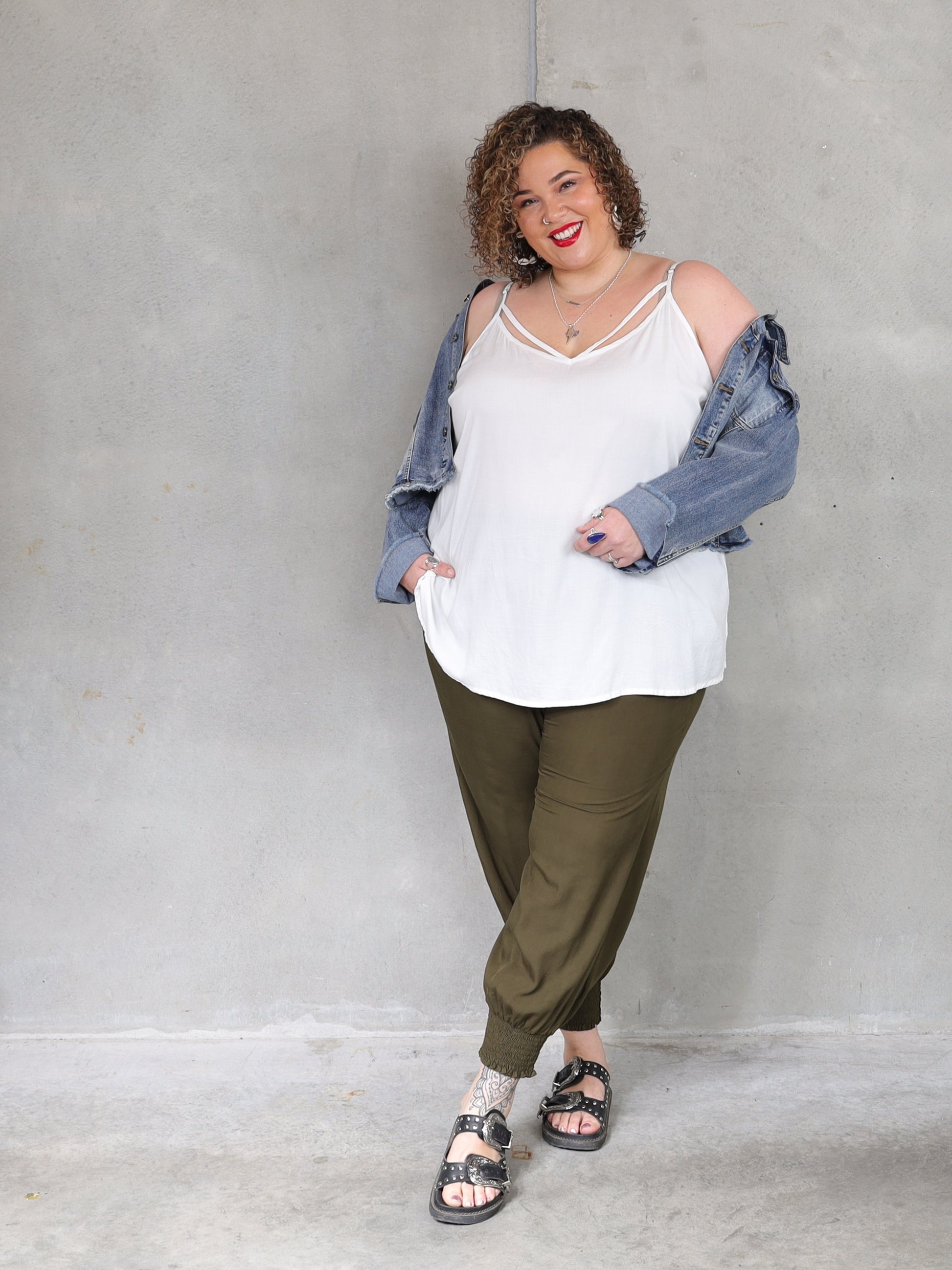 The Chloe Cami is the ultimate must-have! With its flirty details and flattering fit, it is designed to gently flow over your tummy and highlight your best features. Wear it knotted with a flowy skirt or tucked into wide leg pants for a great casual look. Throw on a blazer if you want to make it corporate.