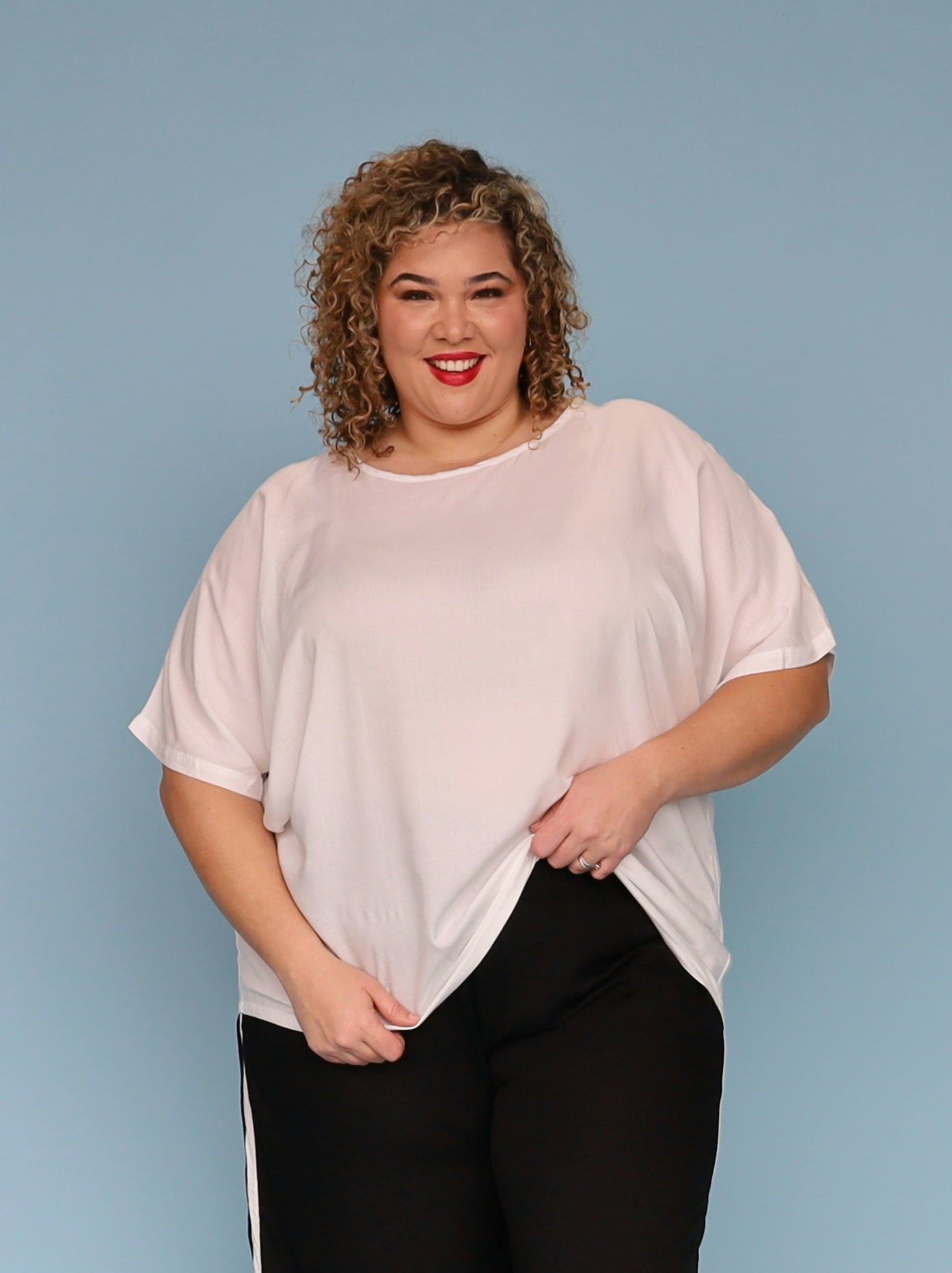 Minimal, modern, and made to go with everything—this boxy lightweight top is the ultimate wardrobe staple. Designed with a clean round neckline and easy short sleeves, it drapes effortlessly for that perfectly relaxed look. Wear it solo on warm days or layer it under your favorite jacket or knit—it’s the kind of piece you’ll reach for again and again.