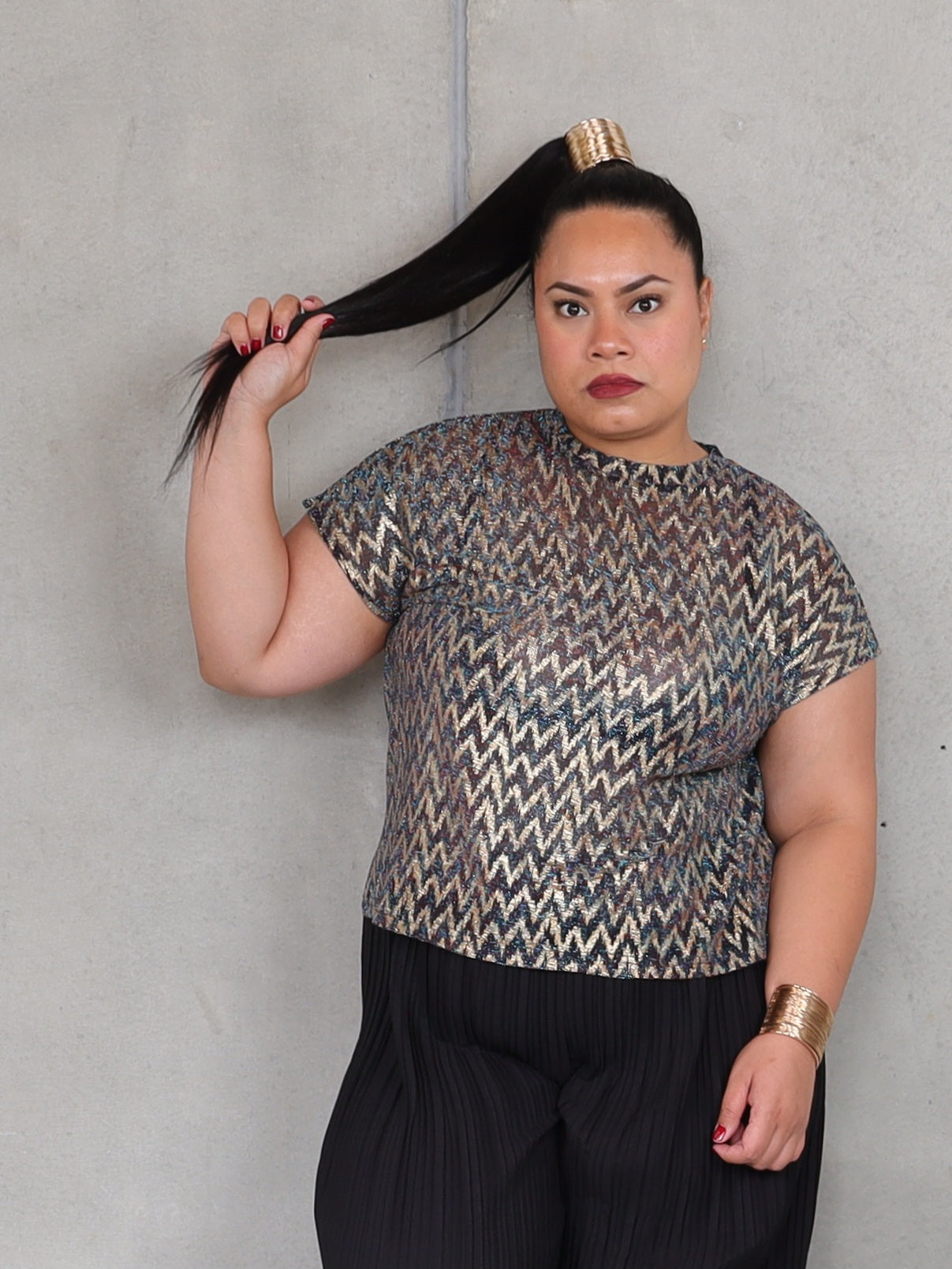 Everyone needs a standout piece in their wardrobe...Say Hello to our new Heroes Lurex Tee! Short and boxy with a high round neckline, it will be fabulous worn under thin strap dresses and jumpsuits or paired with wide legged pants and floaty skirts. And the metallic colours are not only a bold and vibrant choice, they are a nod to Bowie himself...