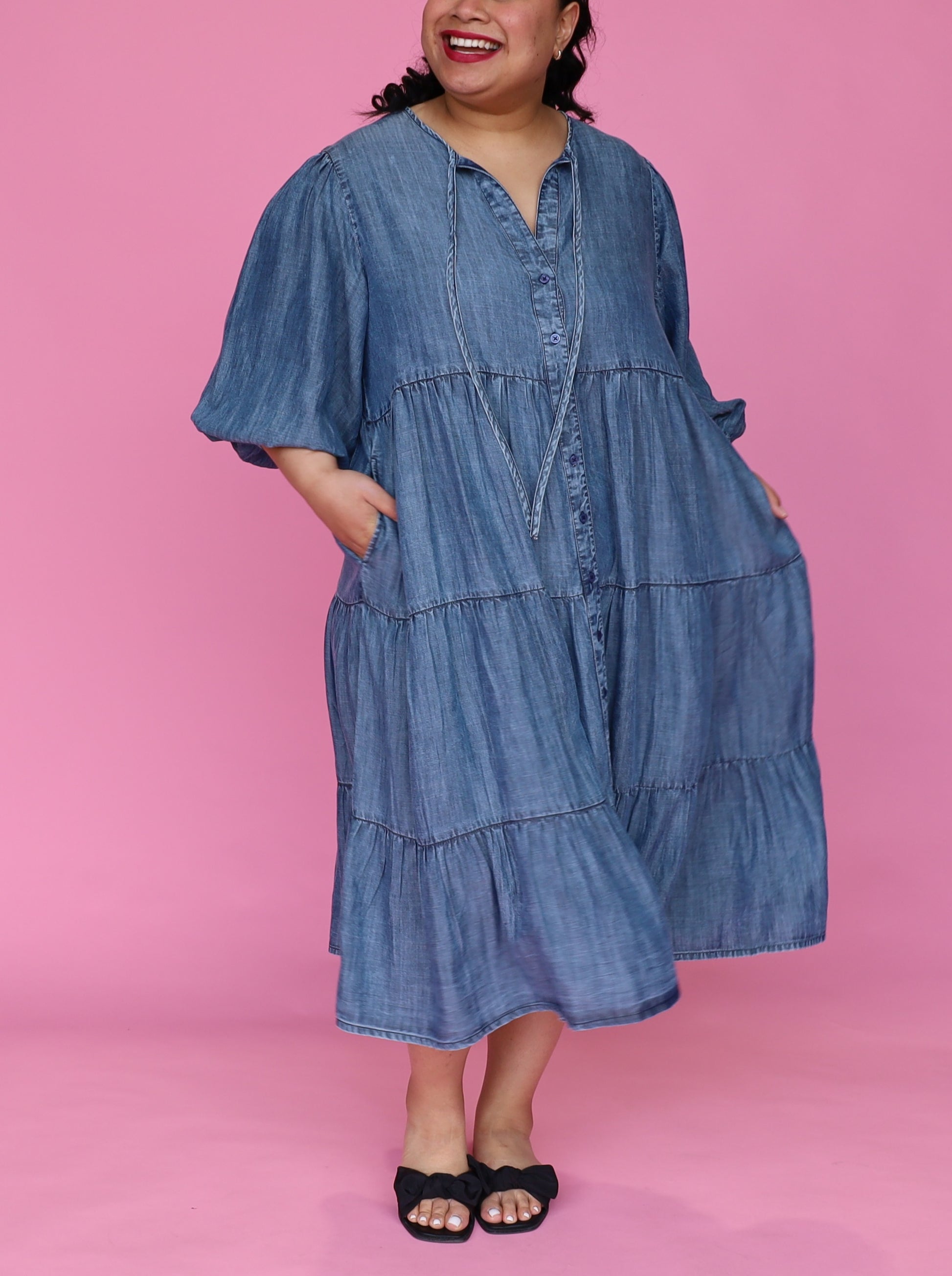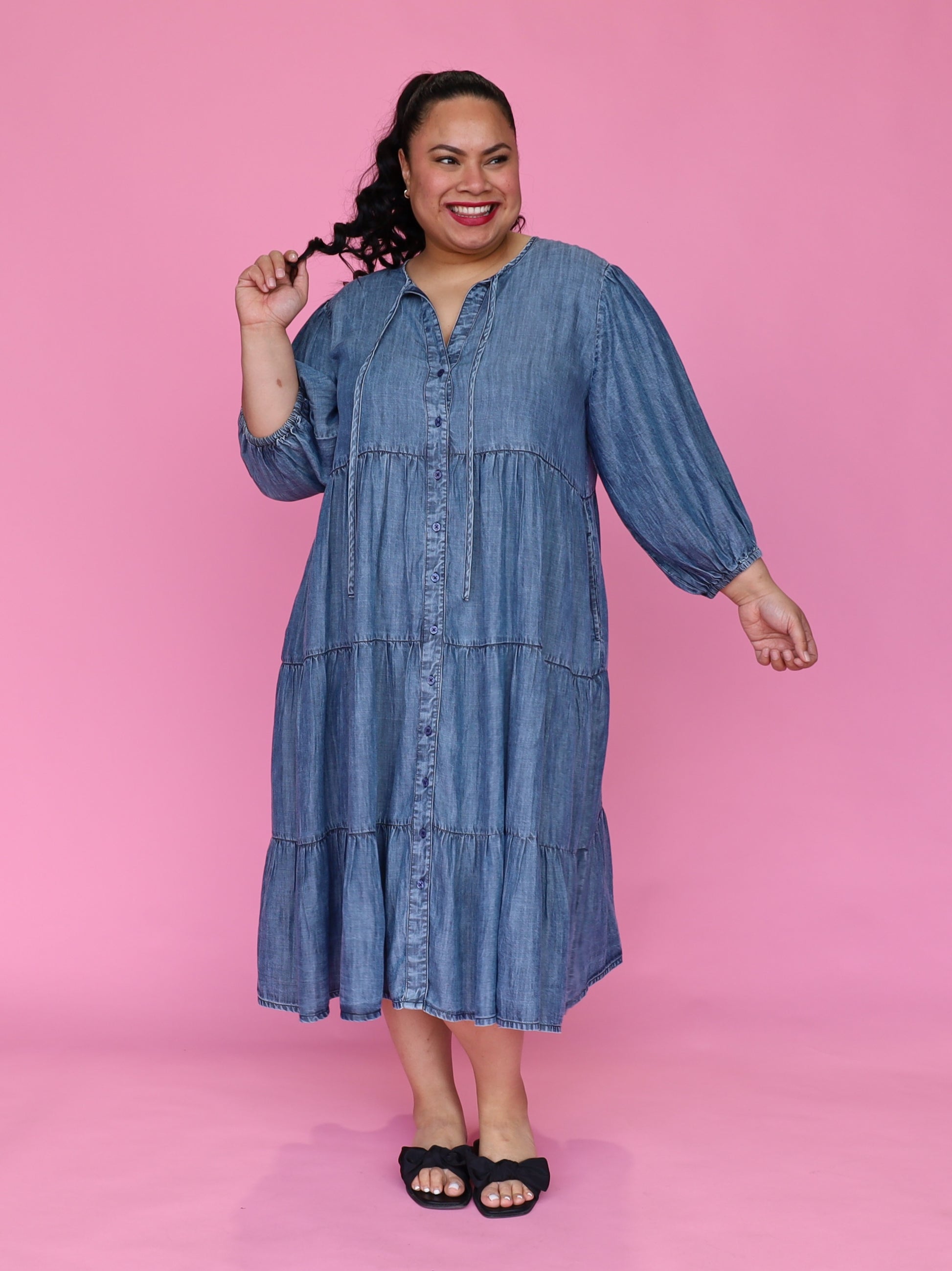 Pretty, flattering, and made to wear on repeat—the Laura Dress is a year-round favorite in the making. With its statement sleeves, A-line tiered silhouette, and button-through front, it strikes the perfect balance of comfort and charm. The V-neckline with delicate ties adds a feminine touch, while the flowing shape makes it effortlessly easy to style. And because we believe in making every piece feel special, Laura always comes with a standout detail—think beautiful fabrics, anglaise panels, or intricate trims. Whether layered with boots in cooler months or paired with sandals in summer, Laura is the dress you’ll never want to take off.