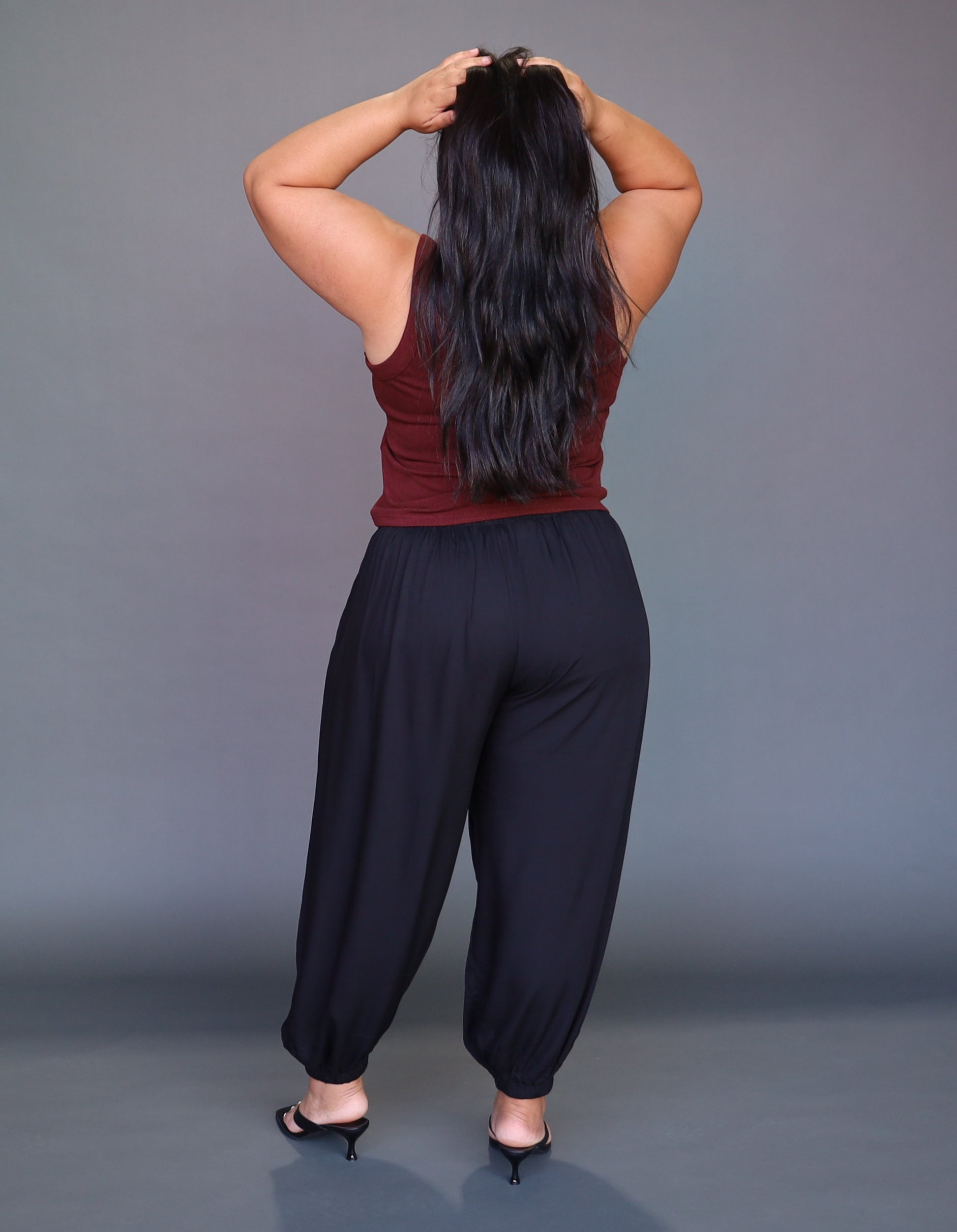 Relaxed and right on trend, these balloon-style pants feature an elasticated waist and cuffs with a functional drawstring for easy comfort. Finished with handy pockets, they’re the perfect blend of style and ease — pair them with a long flowy shirt and blazer, or switch to a cropped knit for effortless weekend cool.