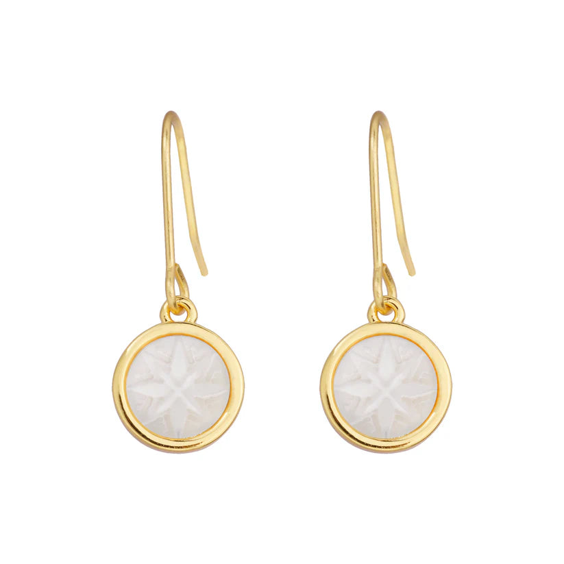 Each piece is made from fine brass dipped in 18kt gold, rose gold or sterling silver, adorned with a Mother of Pearl Seashell.