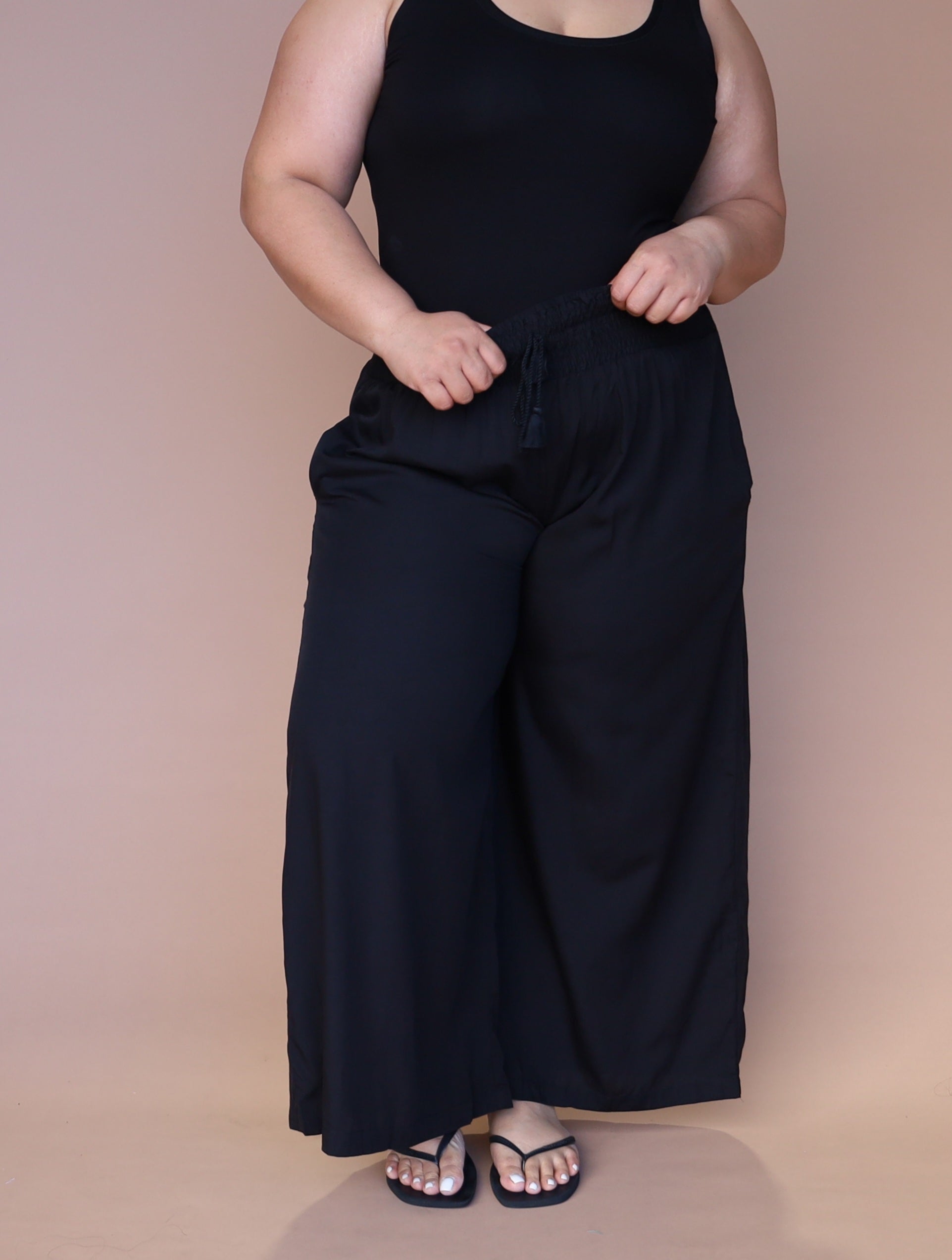 These pants are the perfect pants! Effortlessly elegant, easy to wear and so flattering. The longline cut elongates the leg while the shirred elasticated waistband allows for great comfort and all-day wear. Pair them with sandals and a shirt for the hot summer months or boots and a chunky knit in winter.