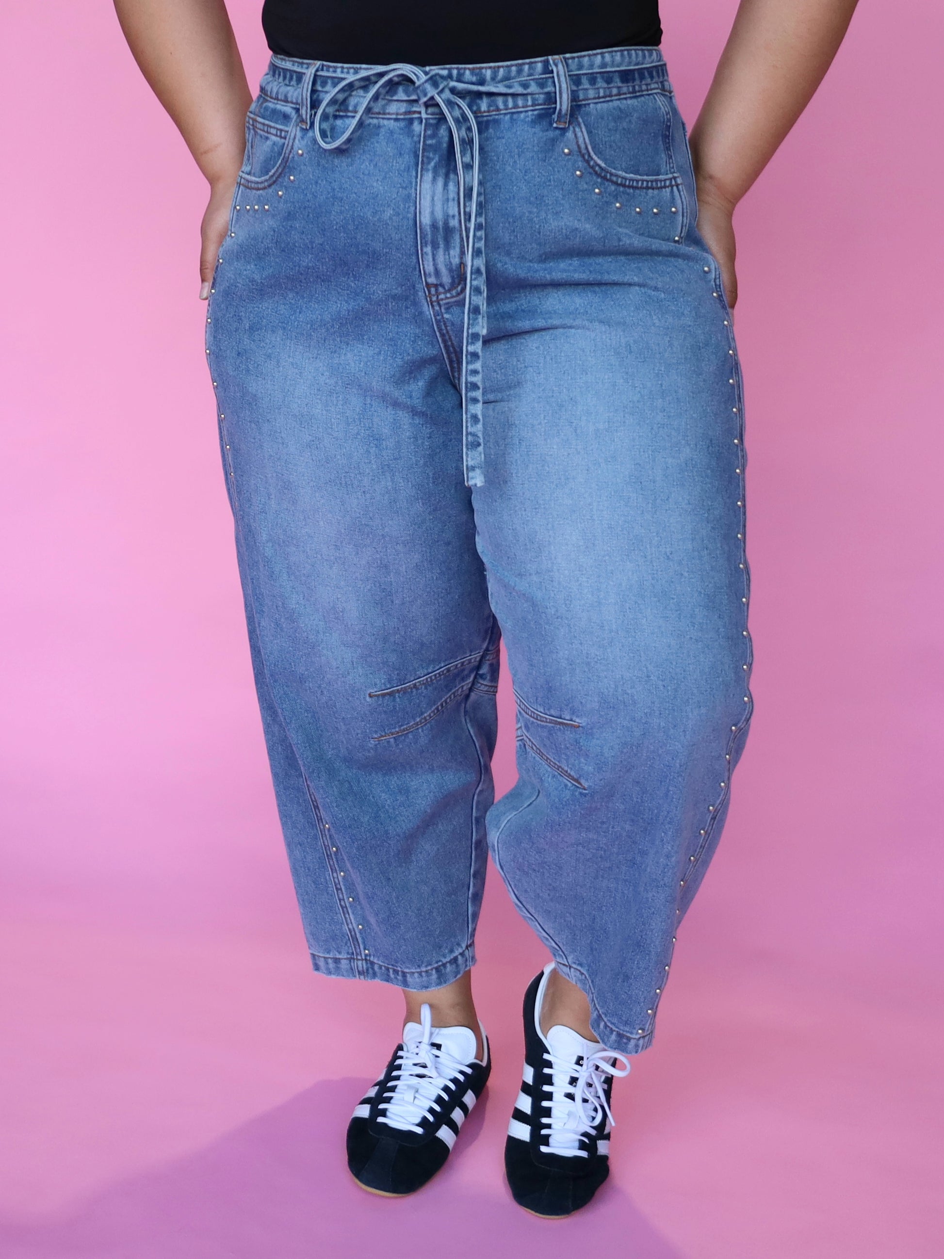 Rio Barrel Jeans - Silver Studs TWO WEEK PRE ORDER