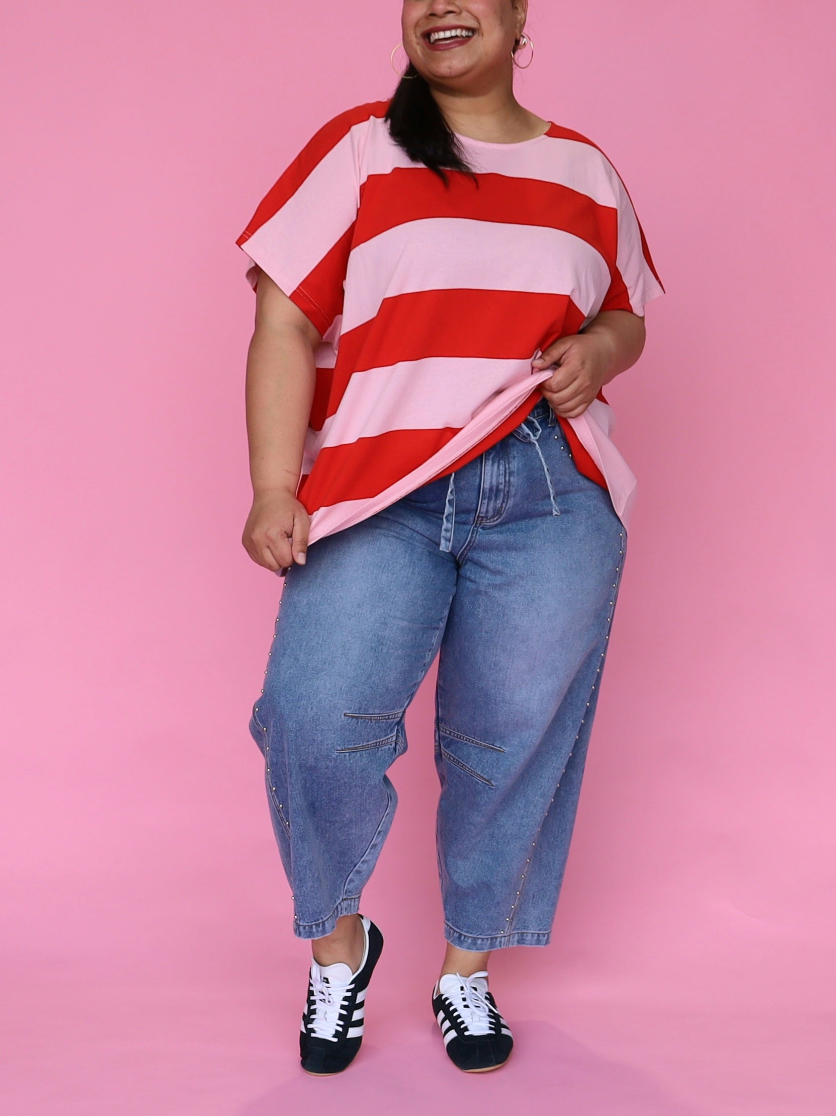 On-trend and effortlessly cool, these barrel jeans are the perfect off-duty staple. Designed with a modern barrel-leg silhouette, button fly, and a chic denim tie, they’re elevated with edgy metal stud detailing down the legs. Dress them up with a blazer and tee or keep it casual with a tank and jandals in summer — the ultimate year-round denim hero.