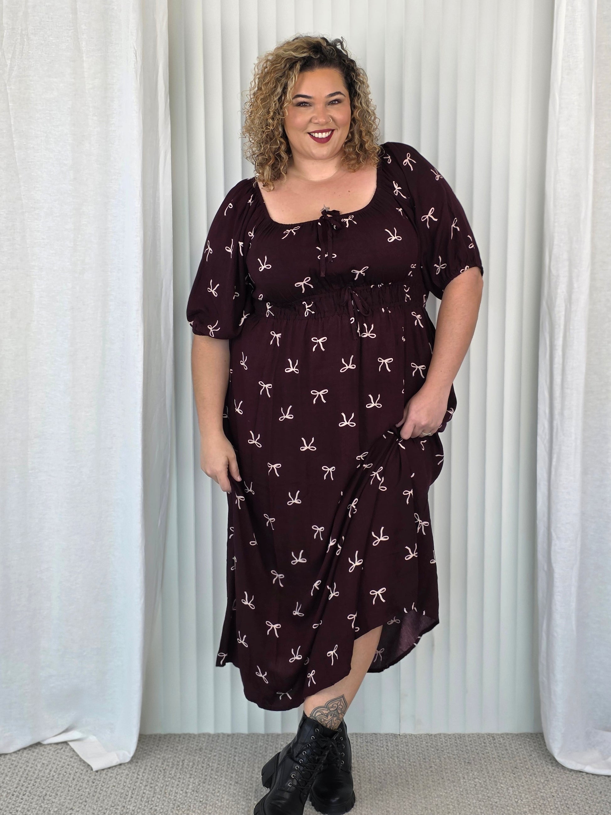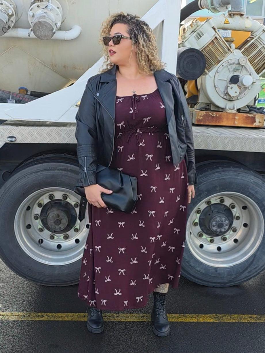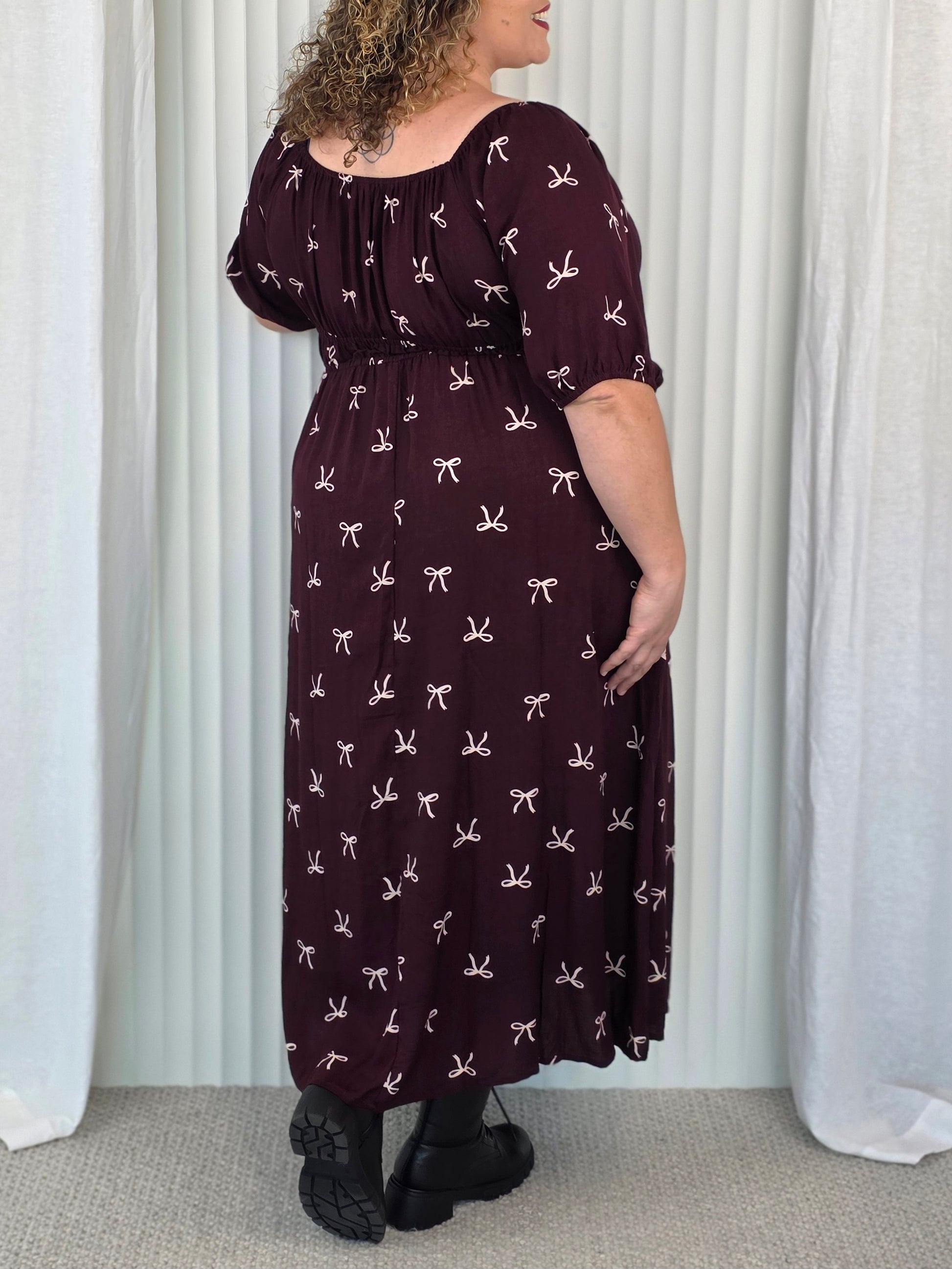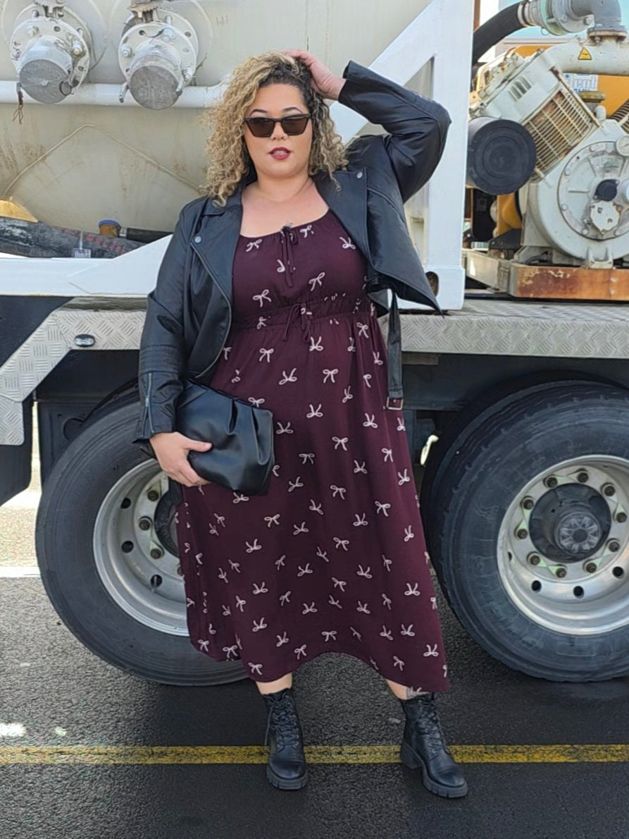 Tabitha Dress - Merlot Bow