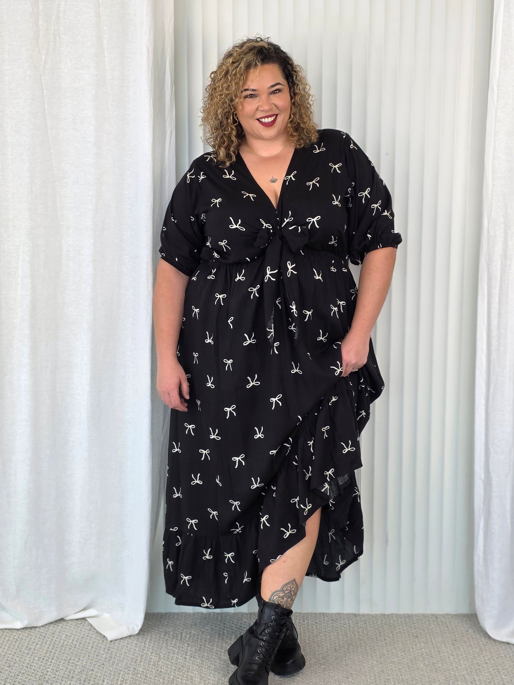 Whimsical, wearable, and full of charm—this updated A-line dress is a fresh take on a bestselling favorite. We’ve kept the beloved full skirt, ruffled bottom tier, and flattering bust ties that knot into a statement bow, but gave it a twist with newly designed billowy sleeves that hit at the elbow for added drama and movement. The adjustable tie detail lets you define your waist, while hidden pockets add everyday ease. Romantic, comfortable, and effortlessly pretty—it’s everything you loved, with just a little more to love.