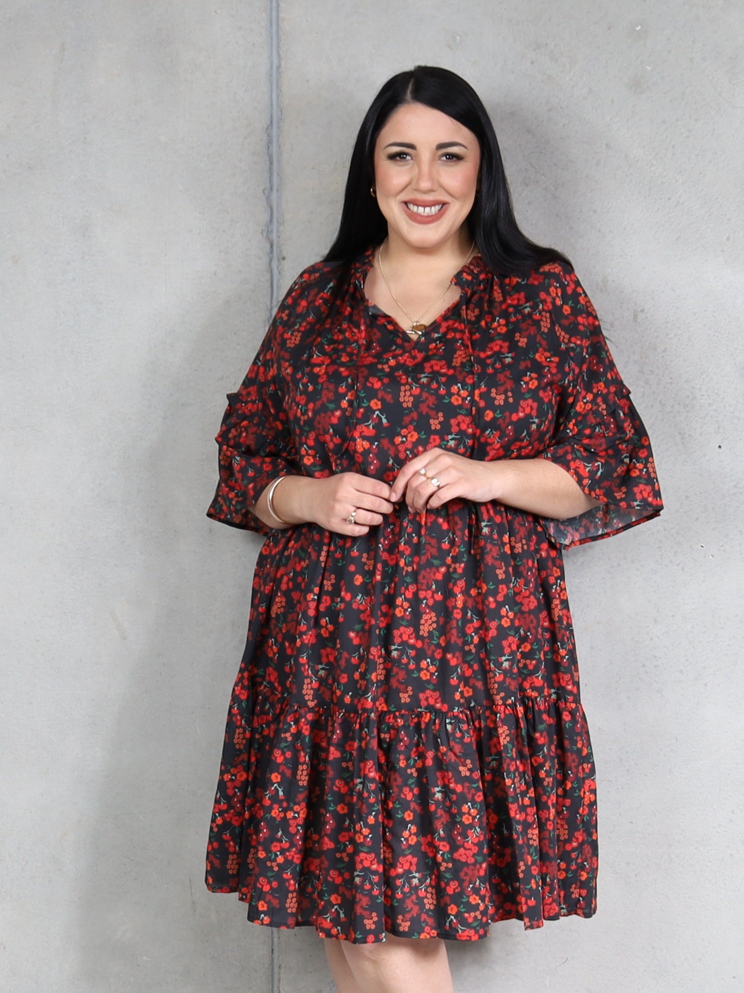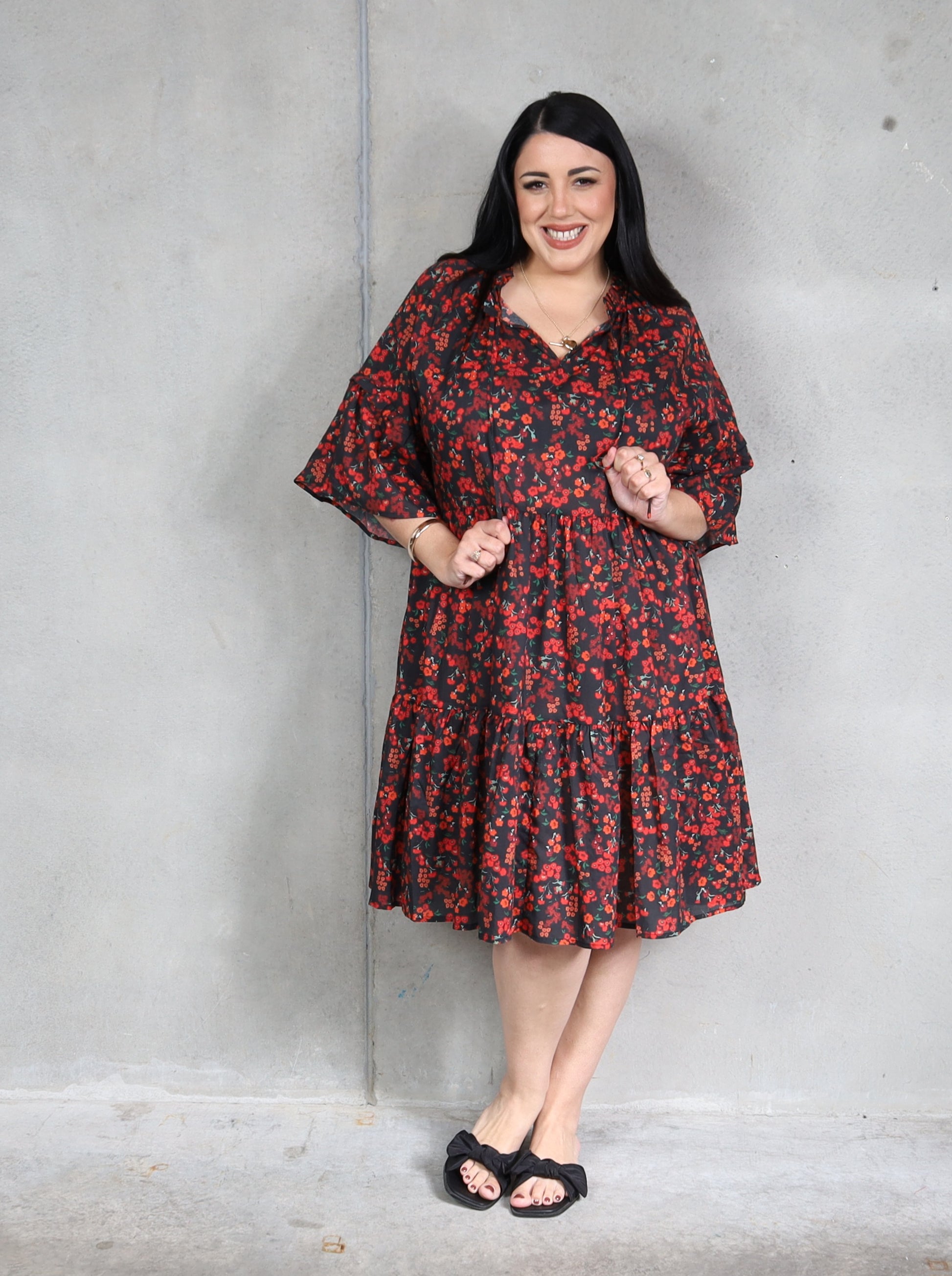 The perfect little swishy dress, our Tiny Dancer is a great style for events or a day out at the winery with girlfriends. We love the cute frills around the neckline and the sleeves, and the below the knee length works great with sandals in summer or tights and boots in winter. A trans-seasonal key piece for any wardrobe.